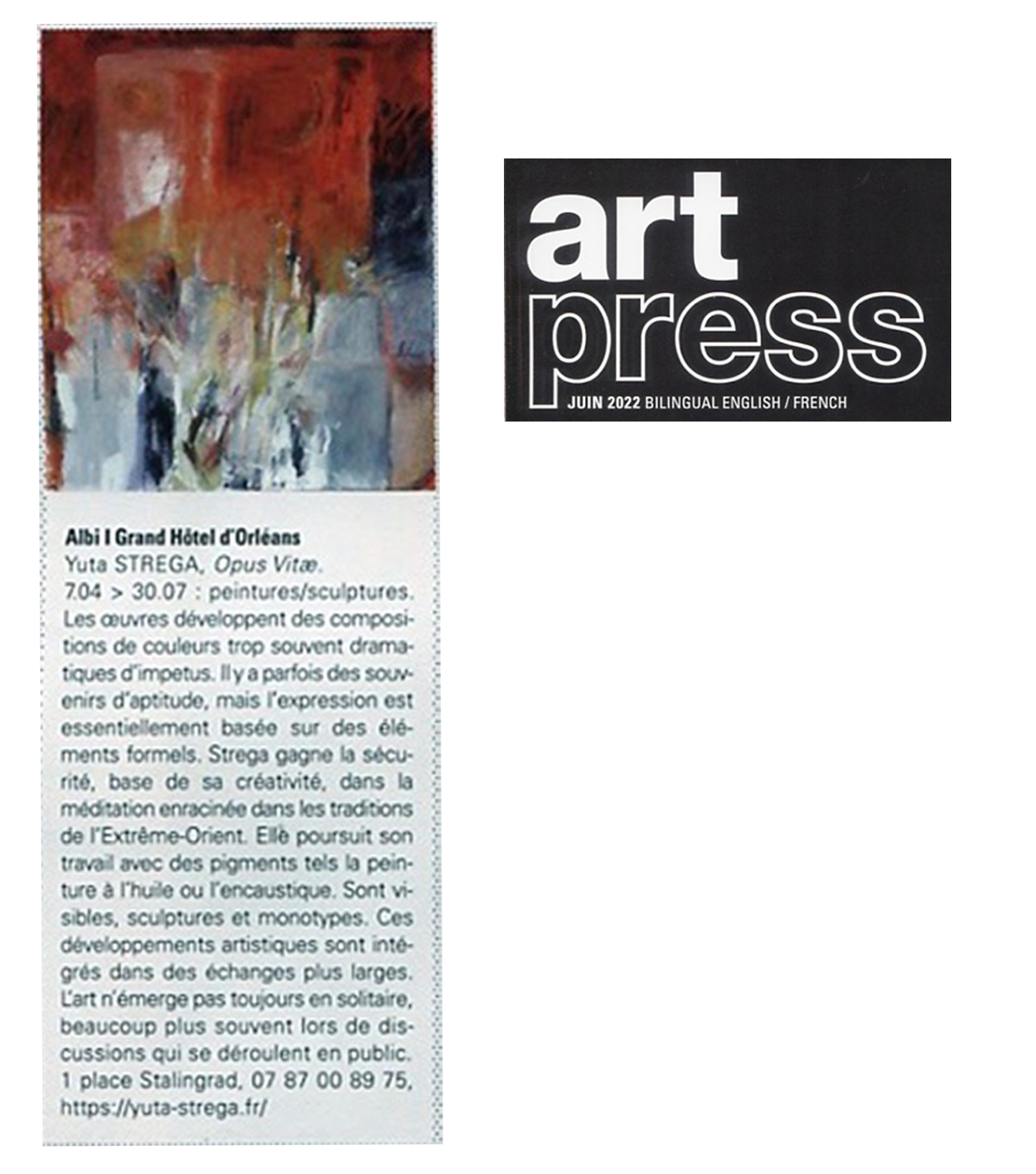 C’est ainsi qu’après avoir étudié aux Beaux-Arts à Francfort, en Allemagne, Yuta Strega, de nationalité française, choisit de vivre en France. “Je me suis d’abord installée dans le Var, au-dessus de Toulon, mais la couleur politique du Var, pour parler clairement, l’implantation forte du Rassemblement National, rendait les choses de plus en plus compliquées. Je l’ai ressenti quand j’avais une école d’art à Sanary. Avec mon mari, nous avons préféré quitter l’ile de Porquerolles et nous installer en Aveyron, où nous avons vécu jusqu’au Covid, mais cela a représenté un tournant et nous avons ressenti le besoin d’être dans un espace plus urbain. Nous sommes maintenant à Albi, et ravis d’être dans cette ville culturelle d’art et d’histoire”.