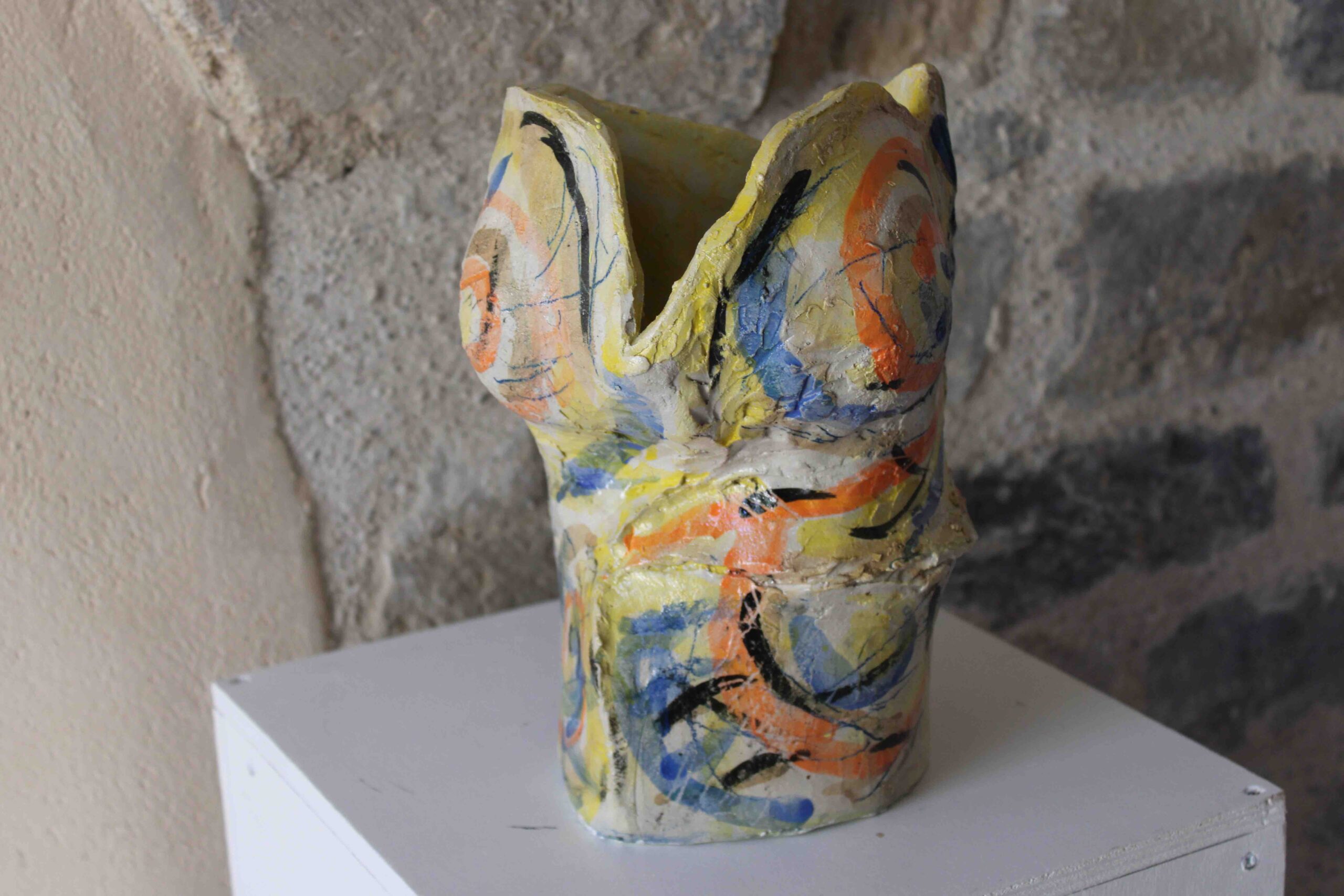hauteur 40 cm céramique cuite à 1240 °C , vernis encaustique